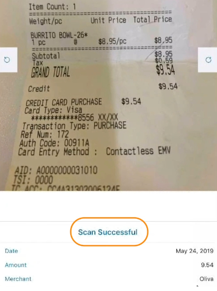 - Plus Receipts get scanned automatically (using our Receipt Scan add-on) for auditing and productivity reasons! No more users entering the wrong amount or wasting time keying in the information manually!